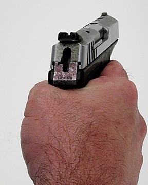 Photo Editor's Note: The photo of the Kel-Tec nine firearm is real, only the hand was provided by a professional stunt hand model. No hands were injured in the filming of this particular shot, couple eardrums left the building. This pistol on the left gets more abusive treatment in a week than most people’s pistols get in a year.